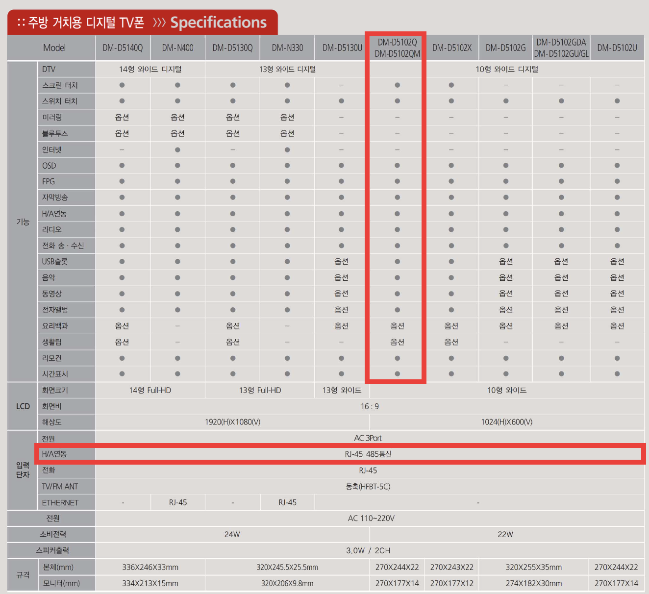 2019년 자료라 그런지 DM-D5102Q, DM-D5102QM 제품만 찾아볼 수 있는데, QMS라고 해서 딱히 스펙이 크게 다를 것 같진 않다