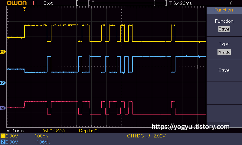 아주 미묘하게 파형이 다른 걸로 봐선, 명령마다 서로 다른 패킷이 송·수신되는 것으로 볼 수 있다