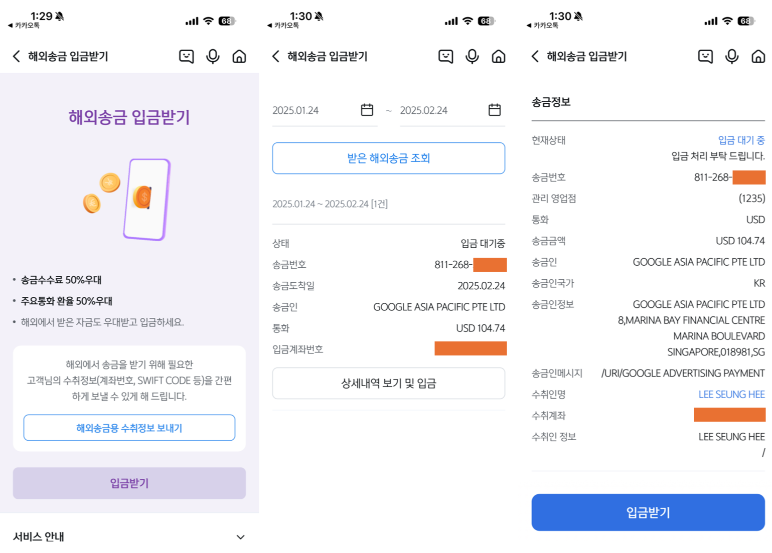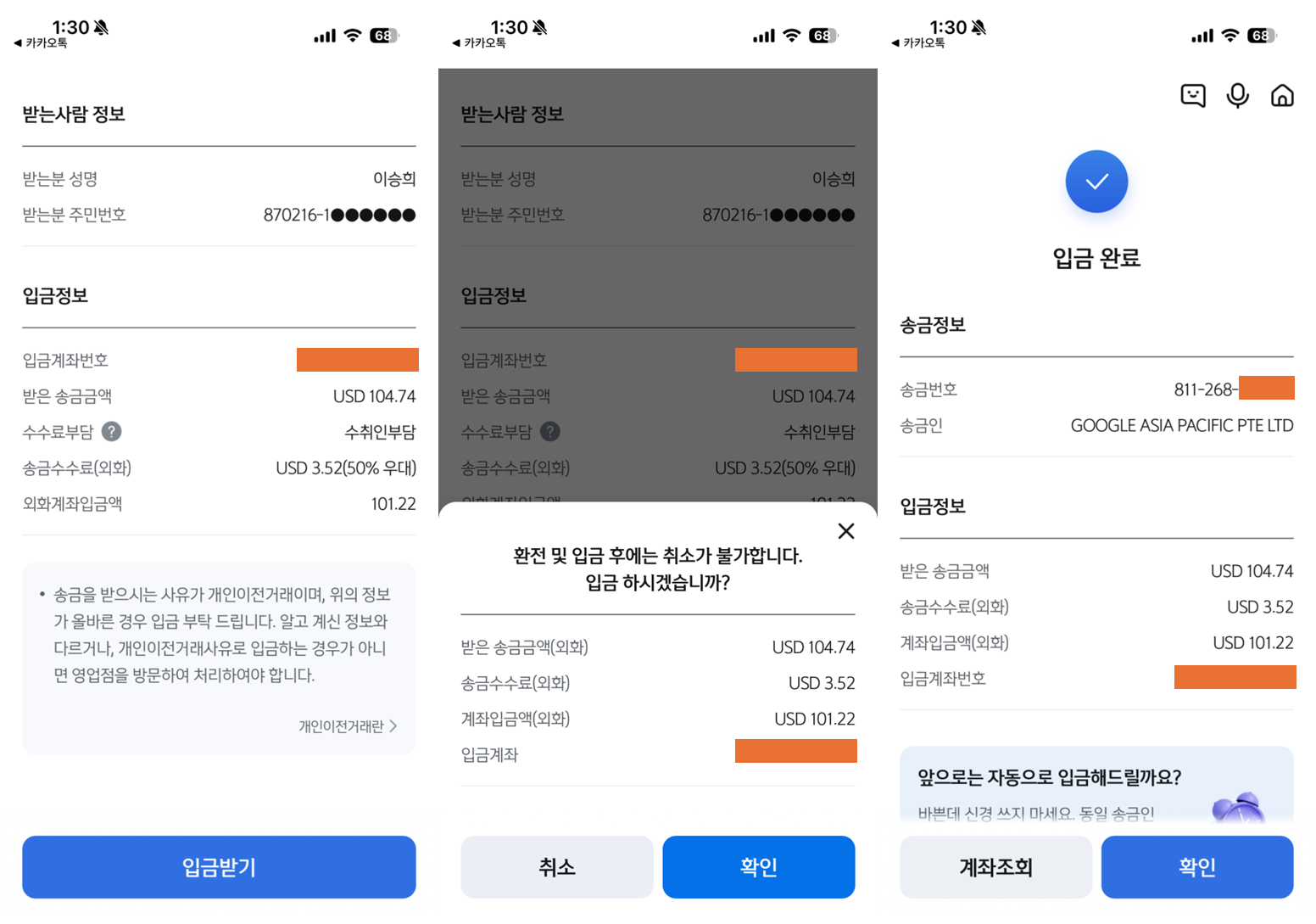 송금인: GOOGLE ASIA PACIFIC PTE LTD