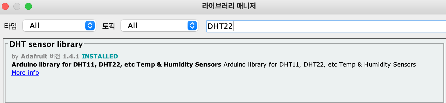 Adafruit는 DHT 센서 시리즈(DHT11, DHT12, DHT21, DHT22)에 대한 아두이노 라이브러리를 제공한다